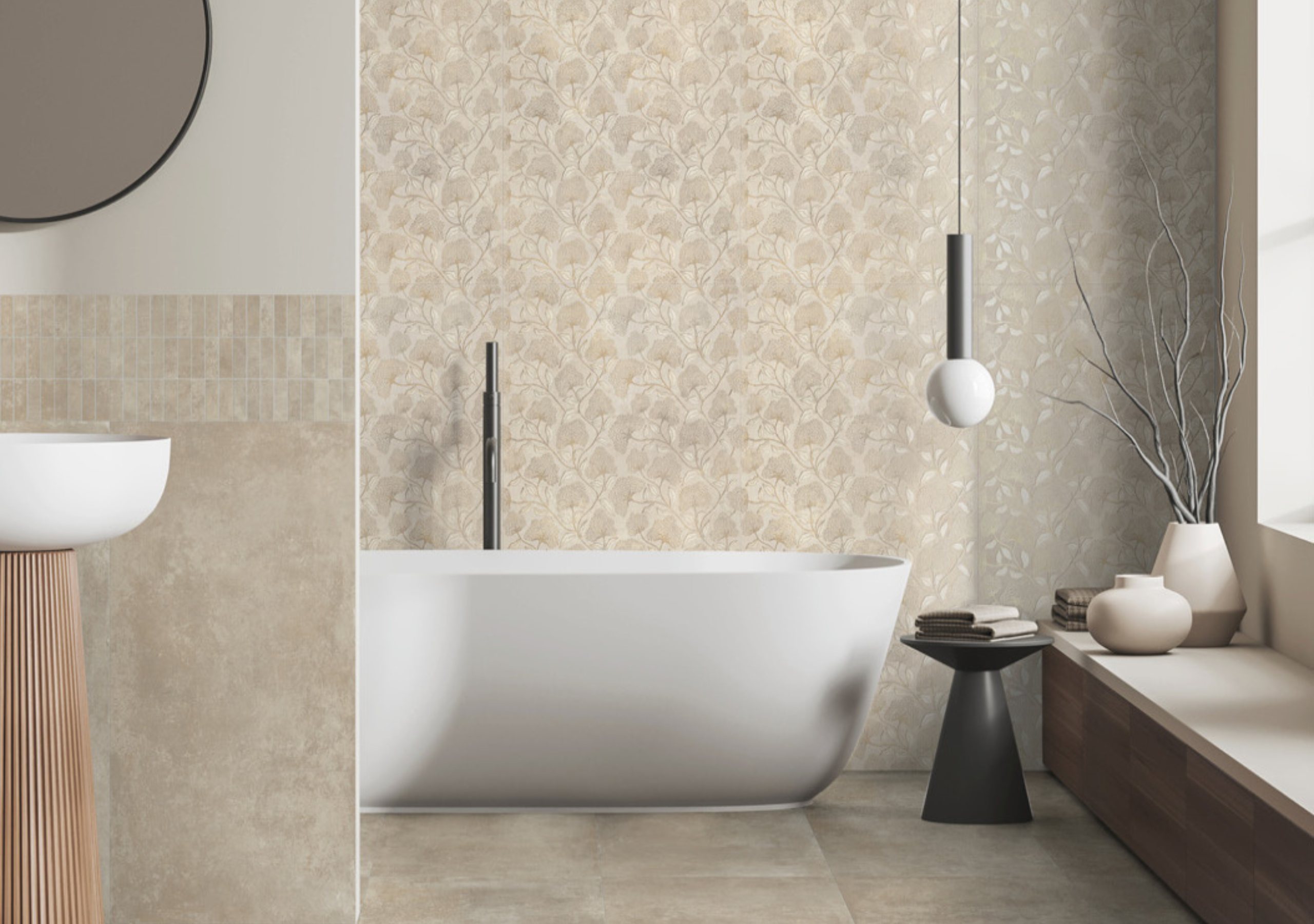 Fein abgestimmte Nuancen sorgen für Tiefe und Natürlichkeit, ohne aufdringlich zu wirken. Ergänzend setzen das ausdrucksstarke Dekor sowie die Bricks gezielte Akzente und eröffnen vielfältige Gestaltungsmöglichkeiten – von dezent und minimalistisch bis hin zu charakterstark und modern.